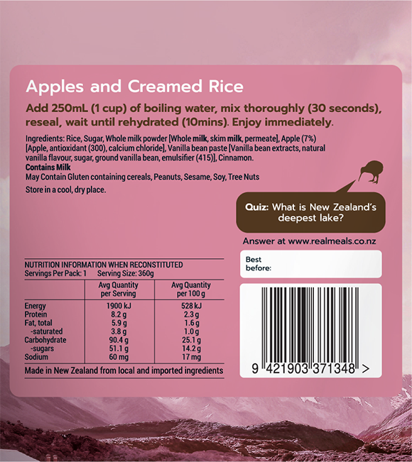 100% New Zealand made. The team at Real Meals are passionate about what they do, making tasty food to enhance people’s experiences, they want people to enjoy their outdoor trips so much they can’t wait to plan another one and get out there.