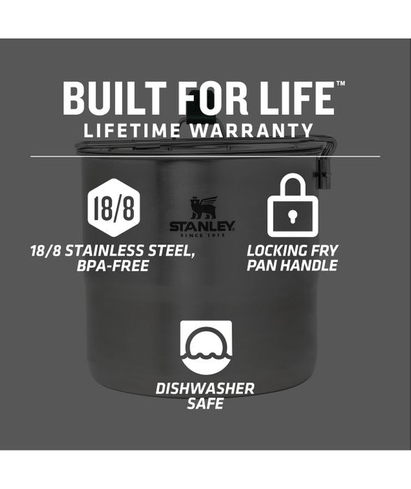 Indulge in warm and soothing oatmeal, coffee, or soup by the campfire or camp stove using this ultralight Stanley Cook Set designed for four people.