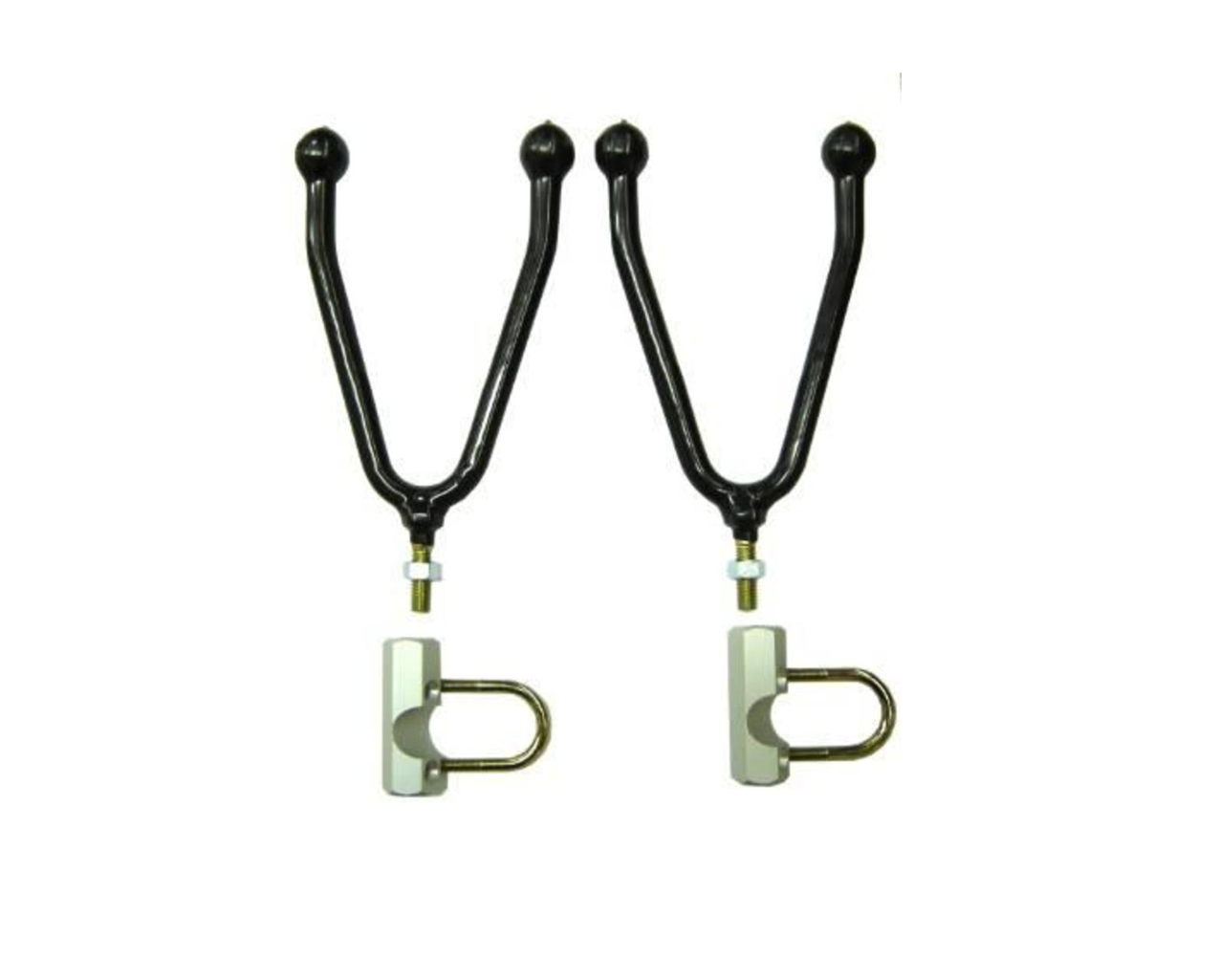 Gun rack for use on your 4 wheeler / motorbike.Sturdy construction, Plastic coated. These will fit the front and rear racks on four wheelers Fits most models, Honda, Kawasaki, Suzuki, Yamaha, ETC. Easy to fit, multi-fit clamp sytem. (no holes to drill). Also carrys shovels, tools, Back pack and anything else that will fit in there.