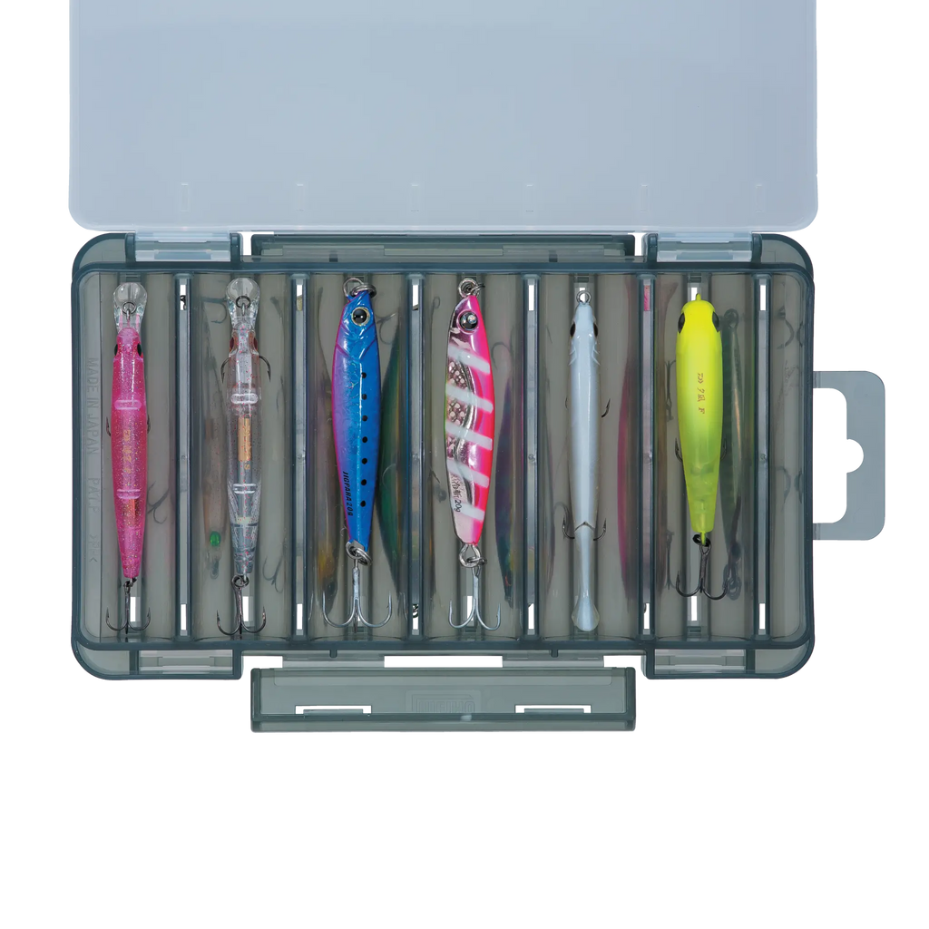 The Meiho Reversible 86L is a versatile, double-sided storage case perfect for organizing lures and jigs. Measuring 175 x 105 x 36 mm, it features 12 slots, each 86 mm long.