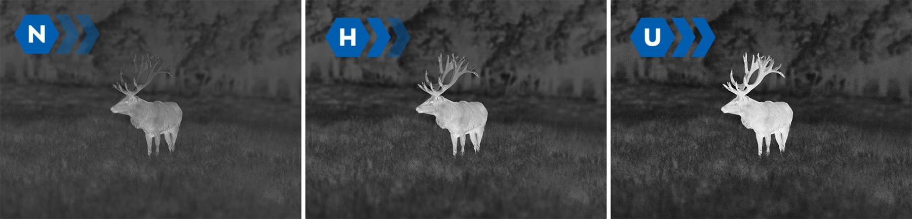 3 amplification levels combined with new filtration algorithms and fine brightness and contrast adjustments, increase the hunter’s chances for early detection of the animals under heavy weather and high humidity conditions. These settings provide optimized rendering of the target and background objects in the observation scene.