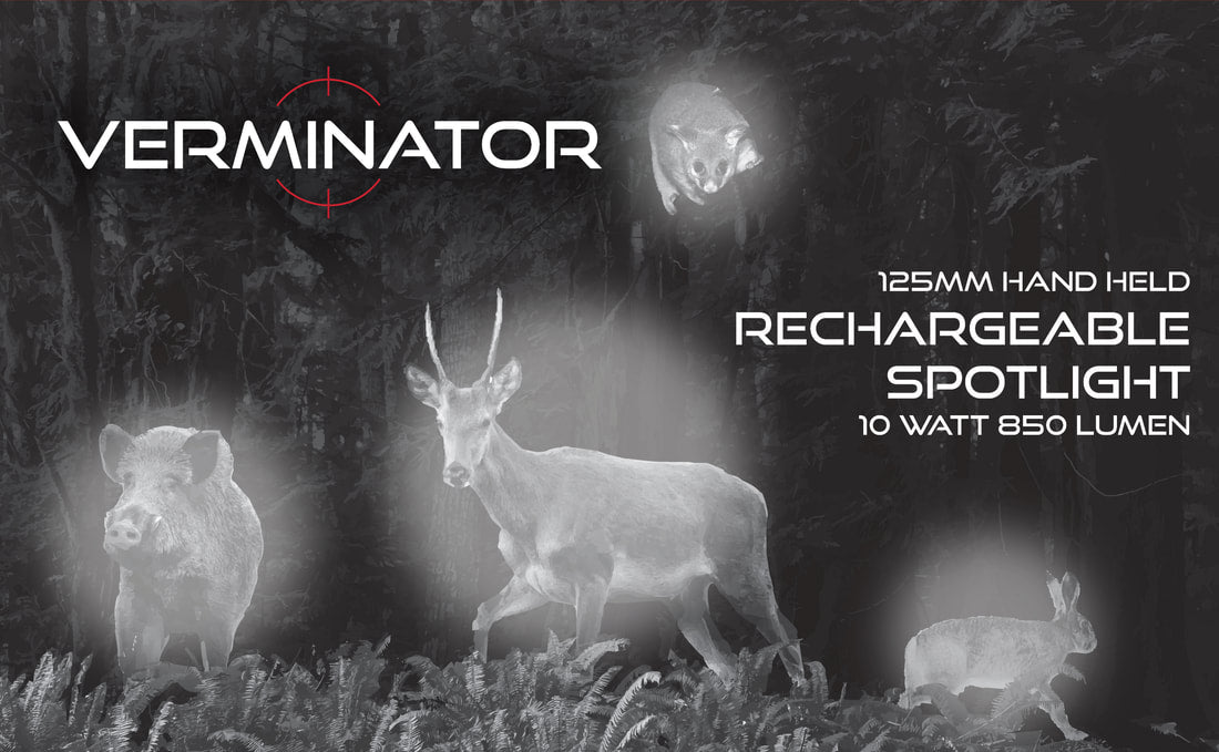 Verminator 125mm Hand Held Rechargeable Spotlight WHITE 850 lumens 10w